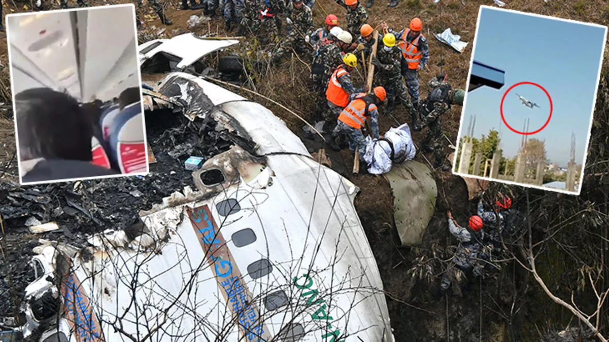 Bölgədə yaşayan və BBC-yə danışan Deeveta Kal, yerli vaxtla 11:00 (08:15 GMT) radələrində təyyarə qəzasını izlədiyini və pilotun təyyarənin binaların üzərinə düşməsinin qarşısını almaq üçün səy göstərdiyini söyləyib. Sosial şəbəkələrdə paylaşılan videoda təyyarə yaşayış məntəqələri üzərindən alçaqdan uçarkən kəskin şəkildə yana doğru görünmək mümkündür. Təyyarədə 4 ekipaj üzvü və 68 sərnişinin olduğu, sərnişinlərdən 15-nin başqa ölkə vətəndaşları olduğu açıqlanıb.