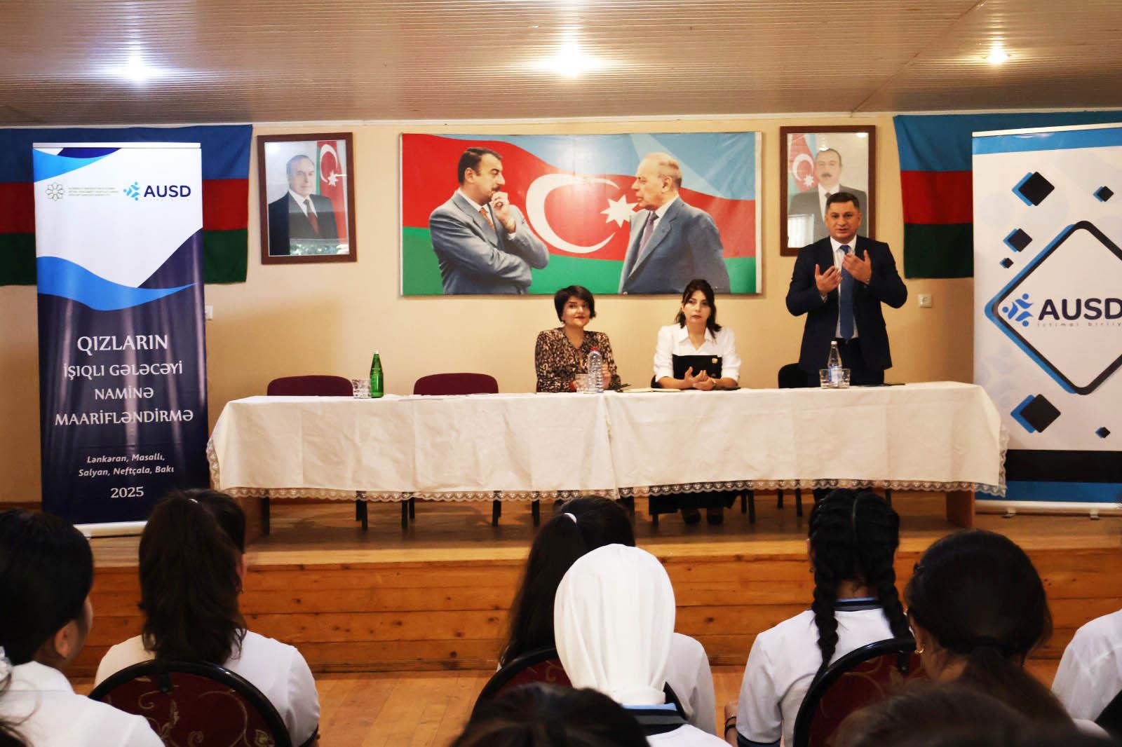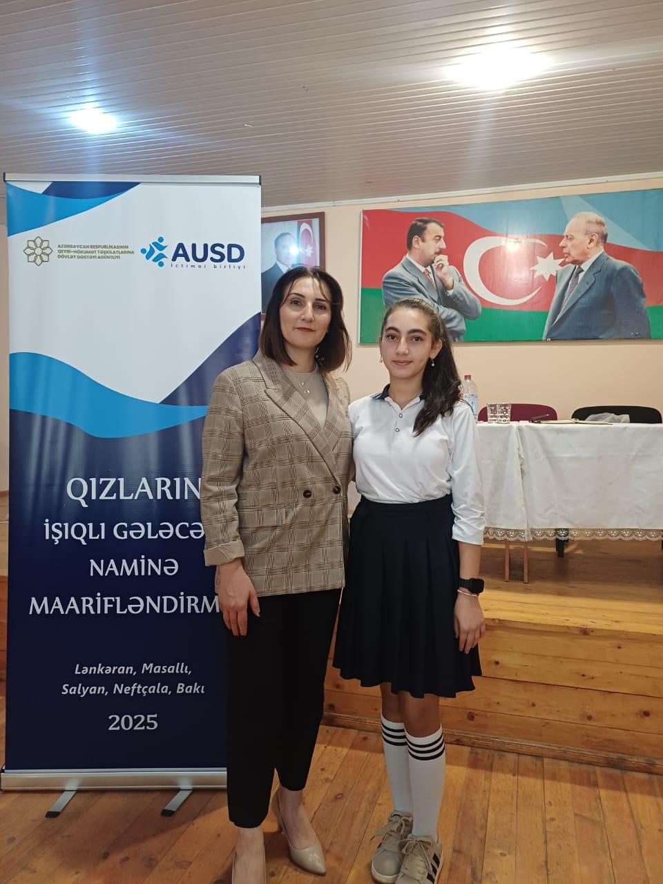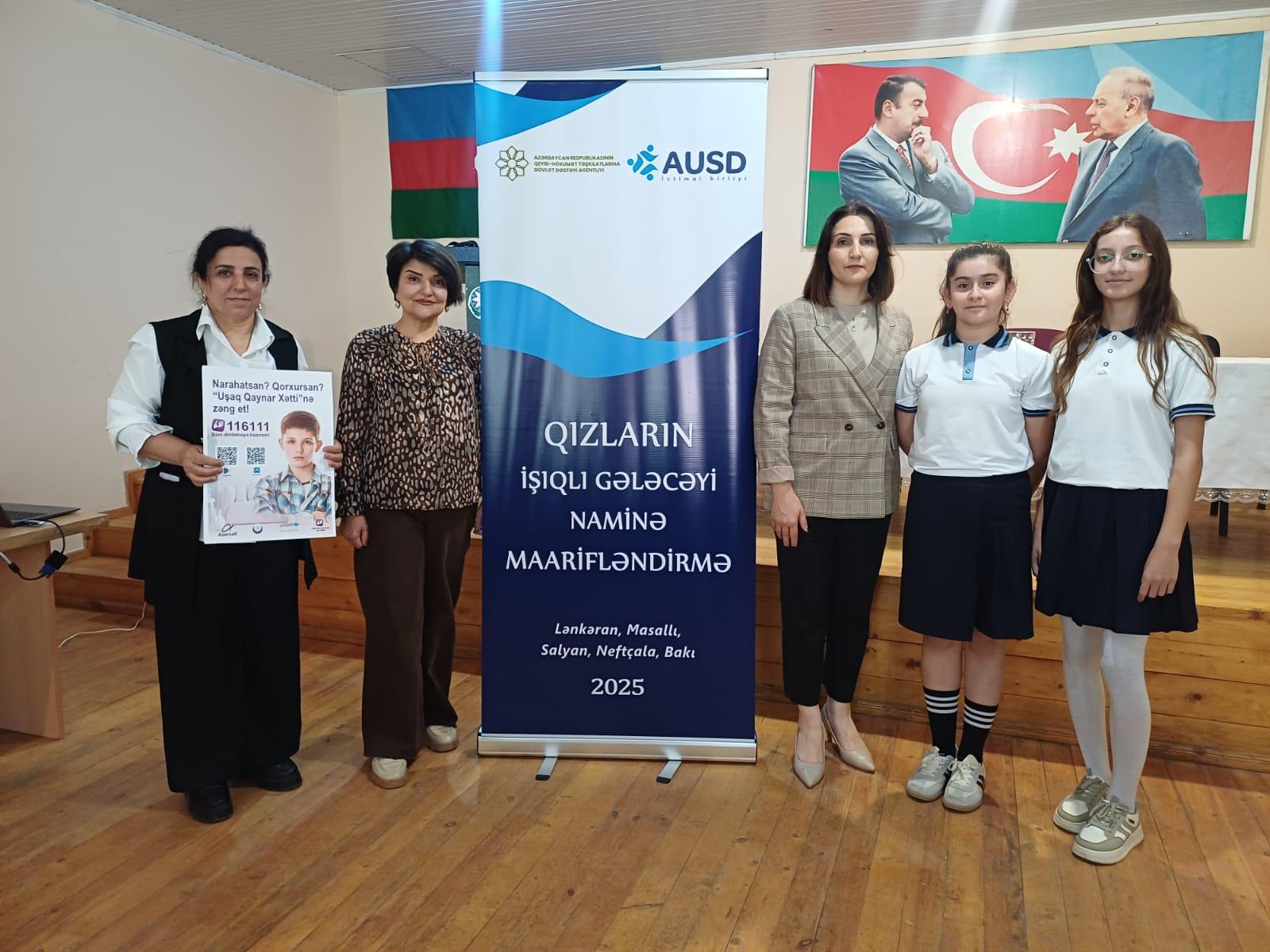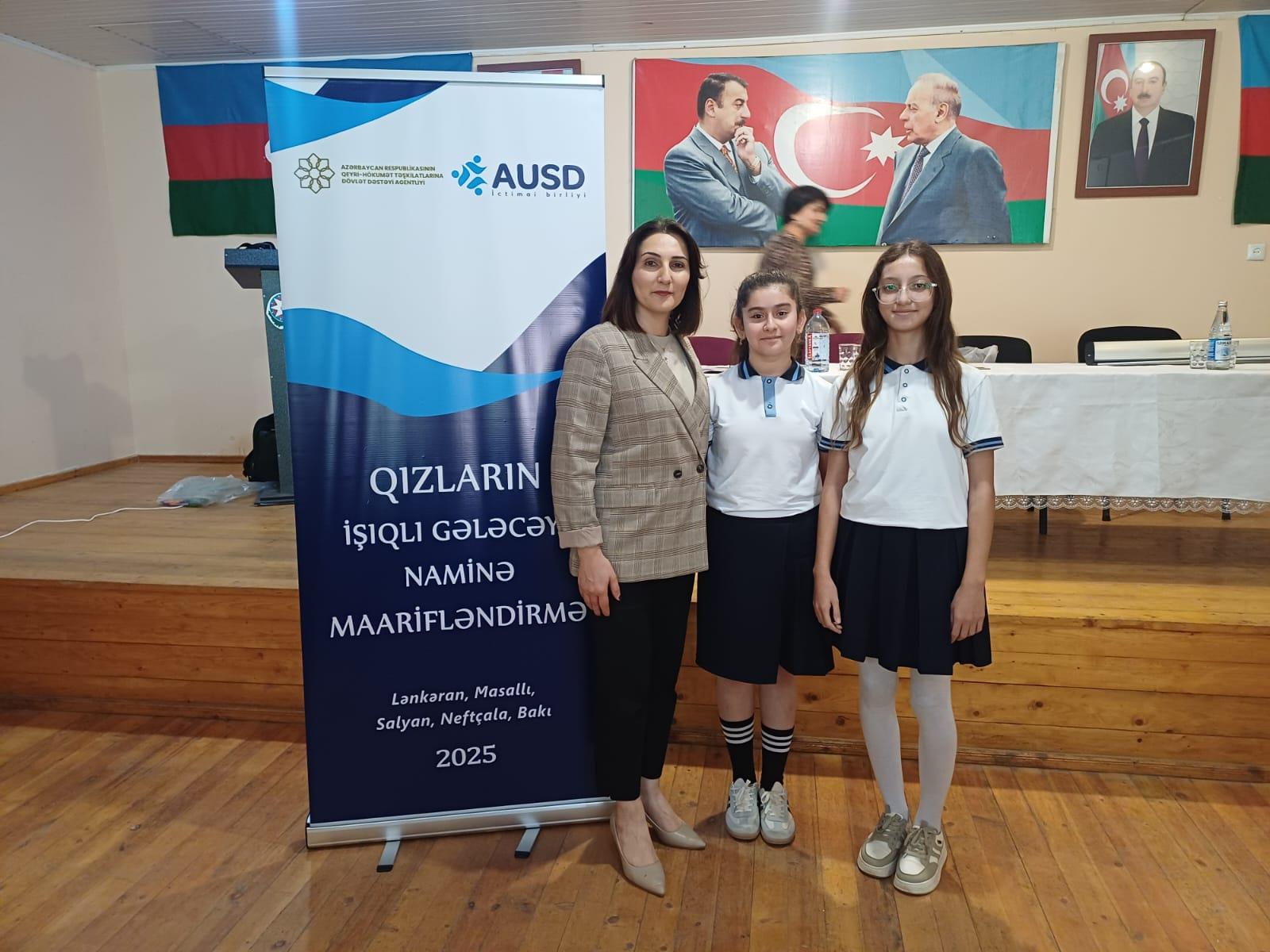 “Ailə və Uşaqlara Sosial Dəstək” İctimai Birliyi Azərbaycan Respublikasının Qeyri-Hökumət Təşkilatlarına Dövlət Dəstəyi Agentliyinin maliyyə dəstəyi ilə “Qızların işıqlı gələcəyi naminə maarifləndirmə” layihəsi çərçivəsində növbəti maarifləndirici tədbir 26 sentyabr 2025-ci il tarixində Masallı rayonunun Dəfinə Liseyində keçirildi.