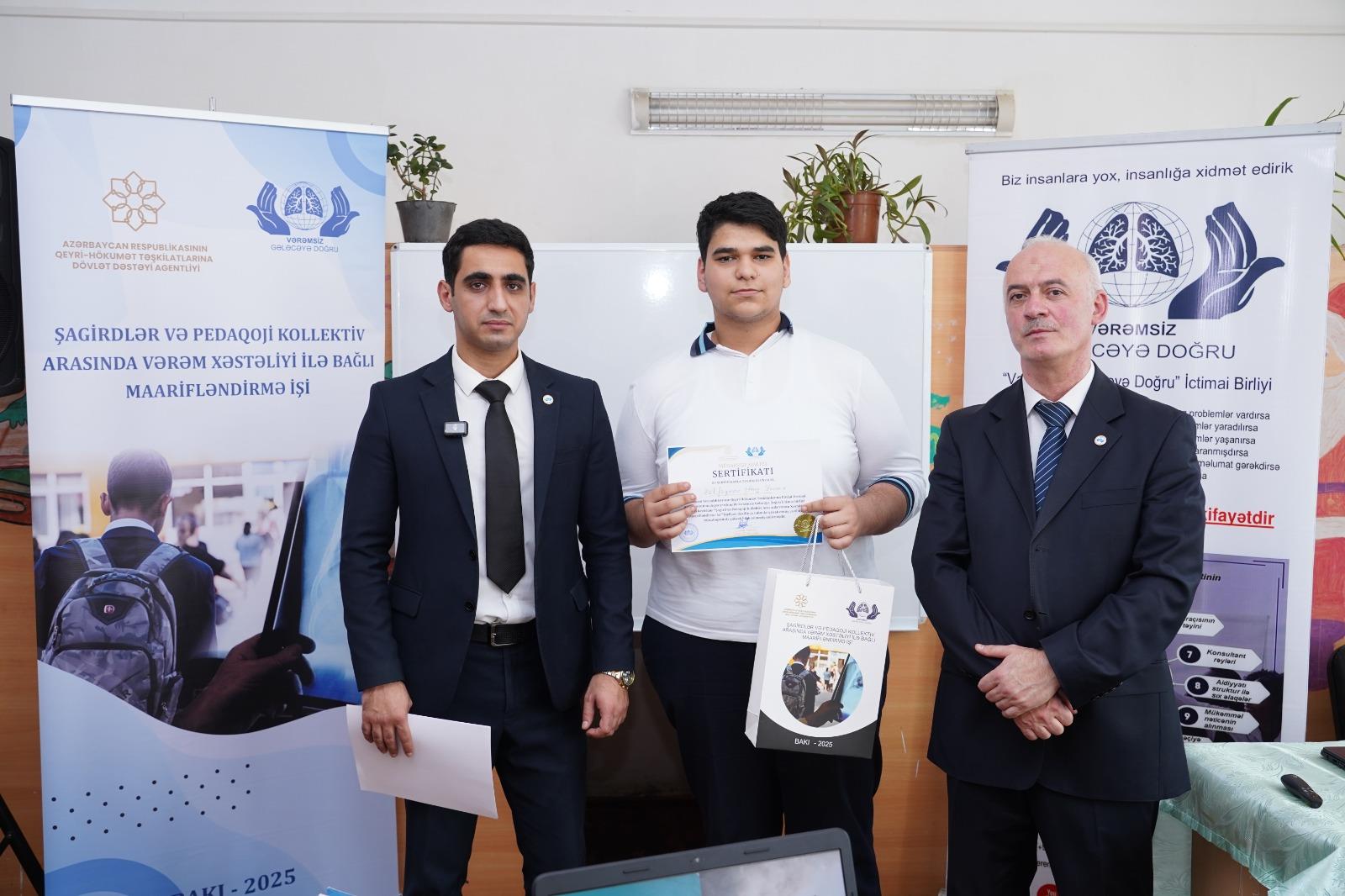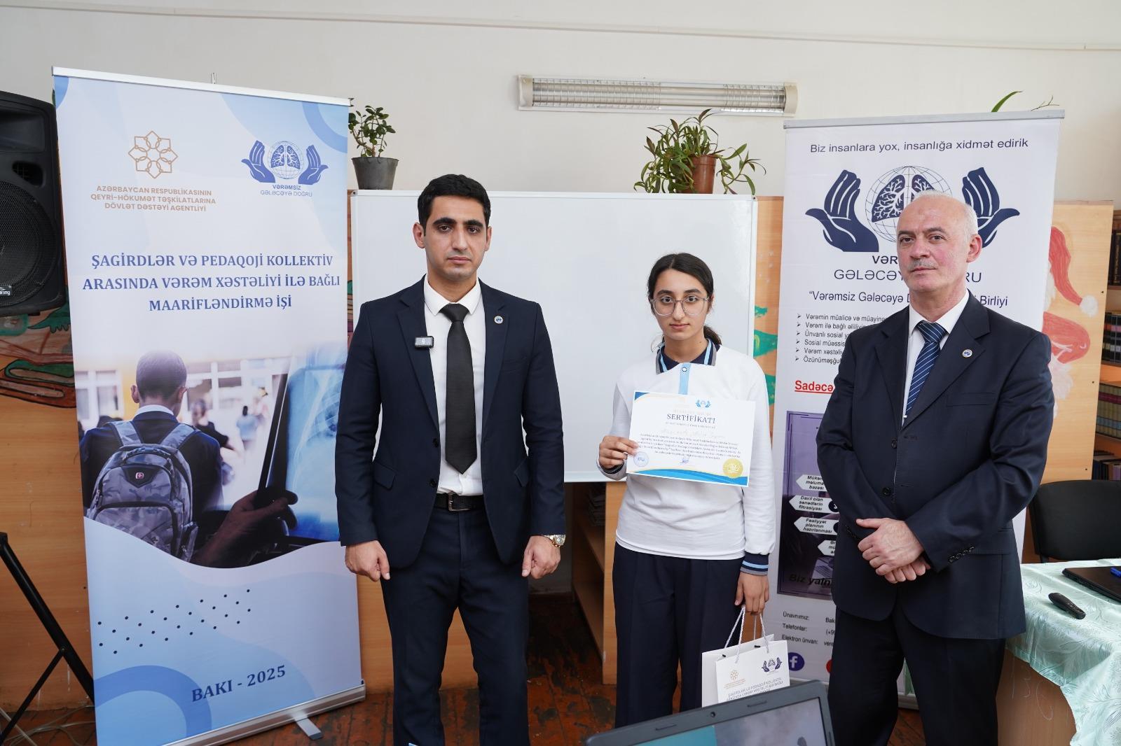 QHT.az xəbər verir ki, bu layihə Azərbaycan Respublikasının Qeyri-Hökumət Təşkilatlarına Dövlət Dəstəyi Agentliyinin maliyyə yardımı ilə həyata keçirilir. Məktəbin akt zalında keçirilən görüşə şagirdlər, müəllimlər və valideynlər qatılıb. Tədbirə maraq böyük olub və iştirakçılar aktiv müzakirələrdə iştirak ediblər. Məqsəd vərəm xəstəliyinin qarşısının alınması, profilaktik tədbirlər və sağlam həyat tərzi barədə maarifləndirmə aparmaq idi.