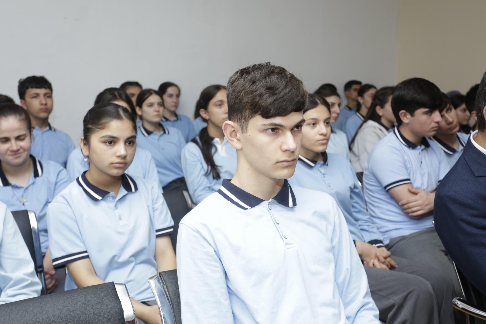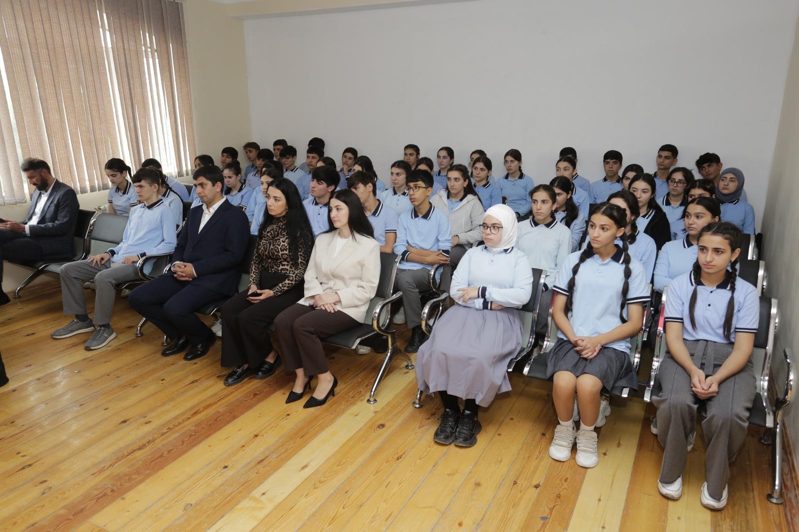 Görüşdə şagirdlərə qəhrəman zabitin döyüş yolu və həyat hekayəsi barədə geniş məlumat verilib.