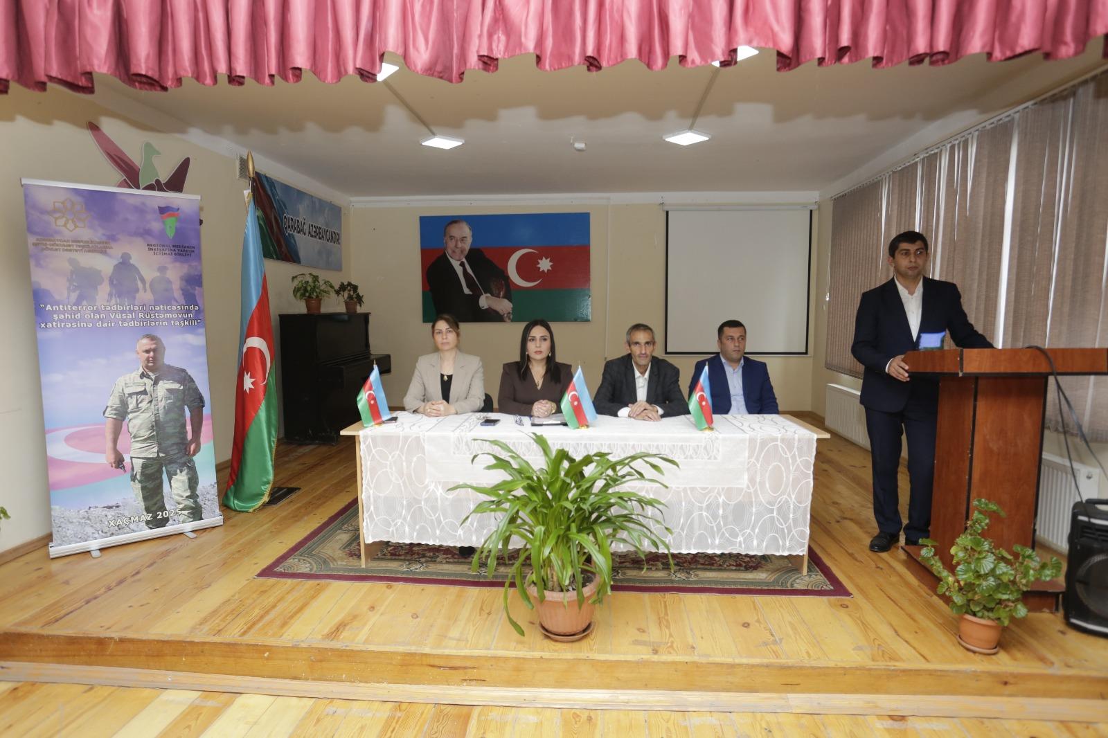 QHT.az xəbər verir ki, "Regional Medianın İnkişafına Yardım" İctimai Birliyinin Azərbaycan Respublikasının Qeyri-Hökumət Təşkilatlarına Dövlət Dəstəyi Agentliyinin maliyyə dəstəyi ilə həyata keçirdiyi “Antiterror tədbirləri nəticəsində şəhid olan Vüsal Rüstəmovun xatirəsinə dair tədbirlərin təşkili” layihəsi çərçivəsində Xaçmaz şəhər 9 nömrəli tam orta məktəbdə şəhid polkovnik-leytenant Vüsal Rüstəmovun xatirəsinə həsr olunmuş tədbir keçirilib.