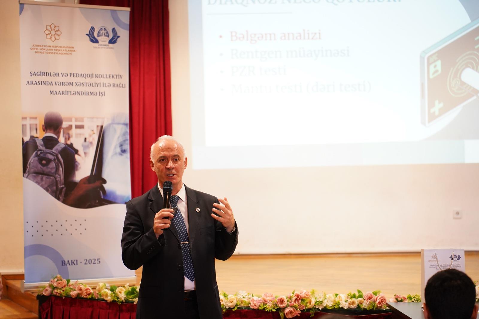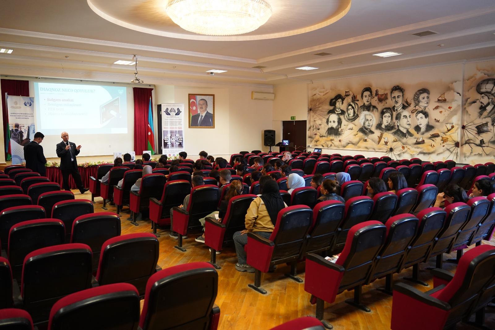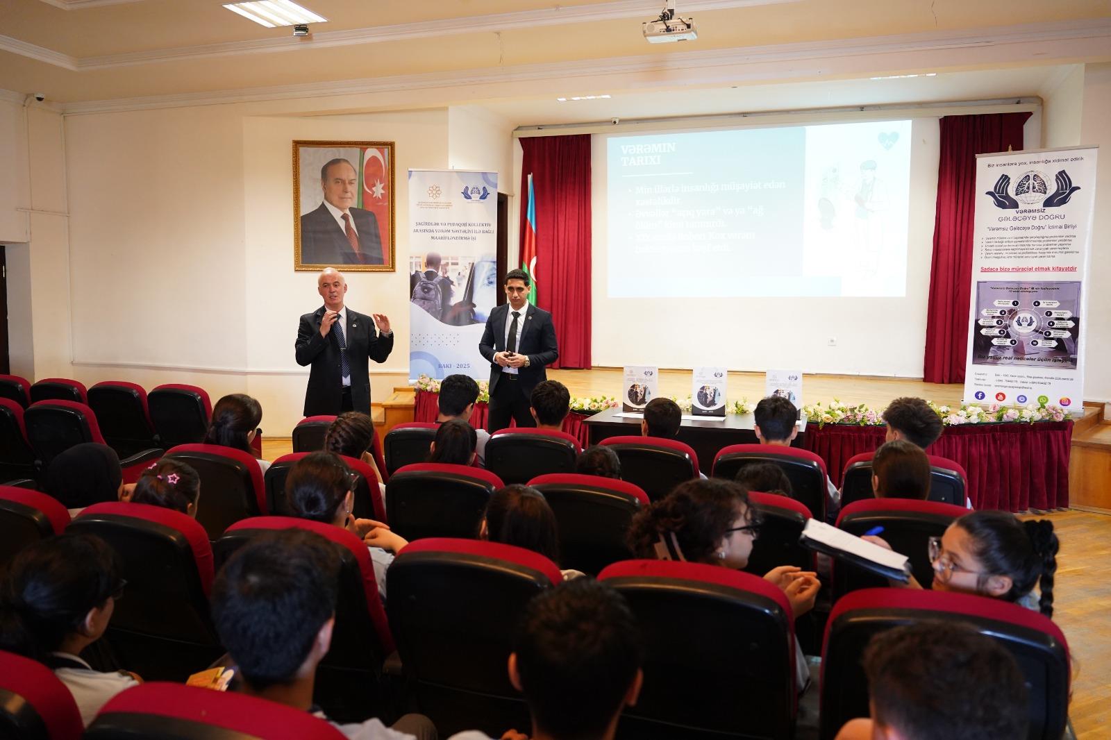 Həkim-mütəxəssislər tərəfindən vərəmin yaranma səbəbləri, onun əlamətləri, ötürülmə yolları və müasir müalicə üsulları barədə ətraflı məlumat təqdim olunub. Təqdimatlar zamanı iştirakçılarla interaktiv müzakirələr aparılıb, şagirdlərə müxtəlif suallar ünvanlanıb və onların bilik səviyyəsi qiymətləndirilib.