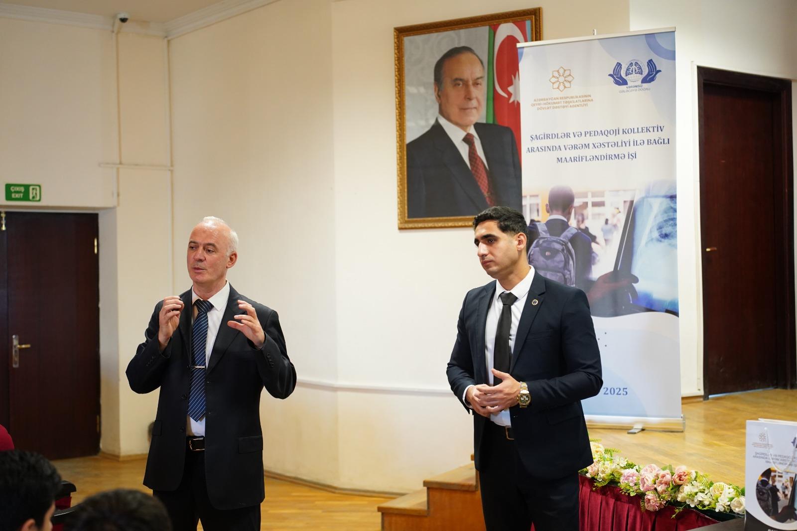 QHT.az xəbər verir ki, layihə Azərbaycan Respublikasının Qeyri-Hökumət Təşkilatlarına Dövlət Dəstəyi Agentliyinin maliyyə dəstəyi ilə həyata keçirilir. Tədbirin əsas məqsədi şagirdlər, müəllimlər və məktəb rəhbərliyi arasında vərəm xəstəliyinə dair biliklərin artırılması, xəstəliyə qarşı düzgün münasibətin formalaşdırılması və erkən profilaktik davranışların təşviq olunması idi.