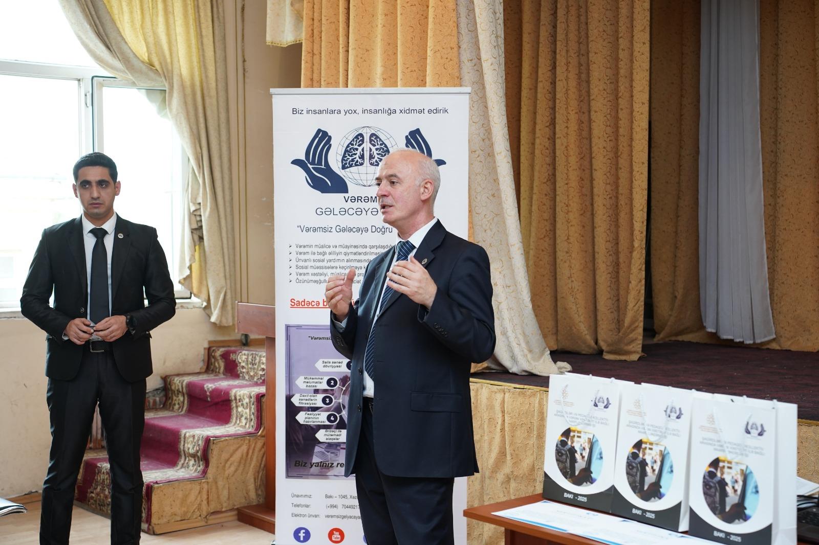 16 oktyabr 2025-ci il tarixində Bakı şəhəri Binəqədi rayonu 99 N-li tam orta məktəbdə “Vərəmsiz Gələcəyə Doğru” İctimai Birliyinin təşkilatçılığı ilə vərəm xəstəliyinin profilaktikasına həsr olunmuş maarifləndirmə tədbiri keçirilib.