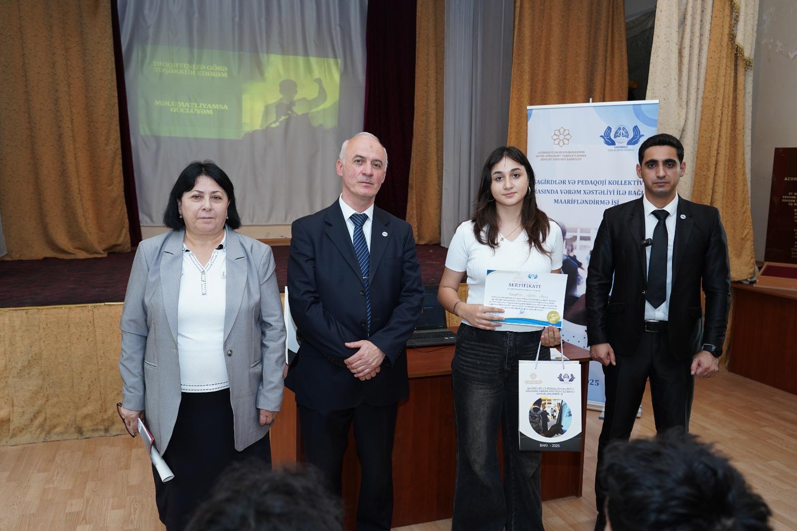 QHT.az xəbər verir ki, tədbir Azərbaycan Respublikasının Qeyri-Hökumət Təşkilatlarına Dövlət Dəstəyi Agentliyinin maliyyə yardımı ilə həyata keçirilən “Şagirdlər və Pedaqoji Kollektiv arasında Vərəm ilə Bağlı Maarifləndirmə İşi” layihəsi çərçivəsində baş tutub.