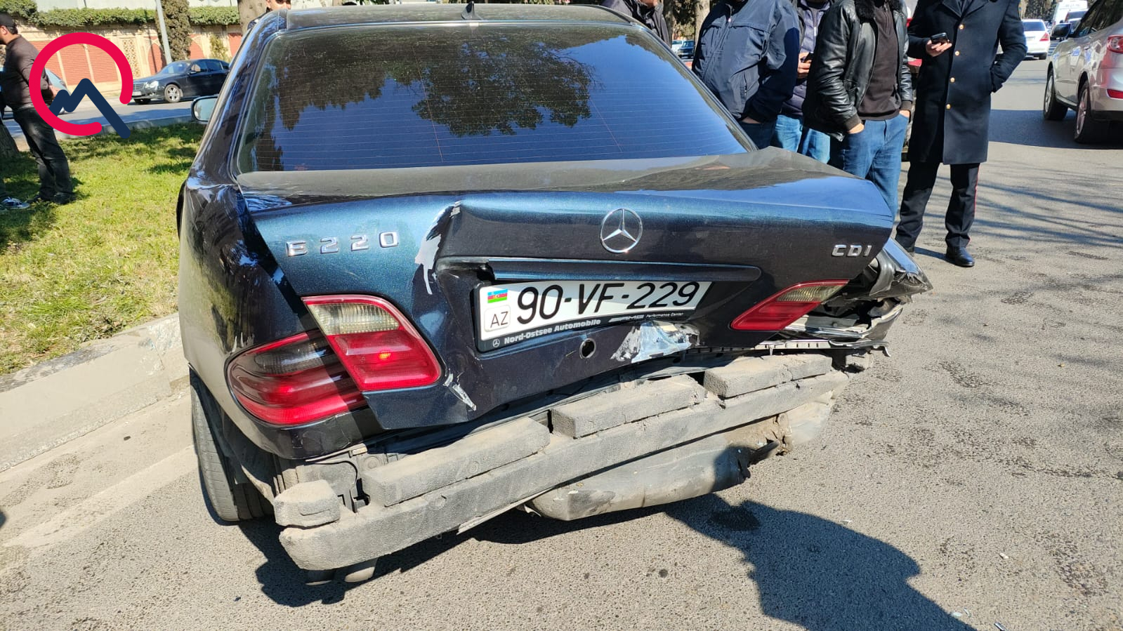 Zərbənin təsirindən minik avtomobillərindən biri yoldan çıxaraq işıq dirəyinə çırpılıb.